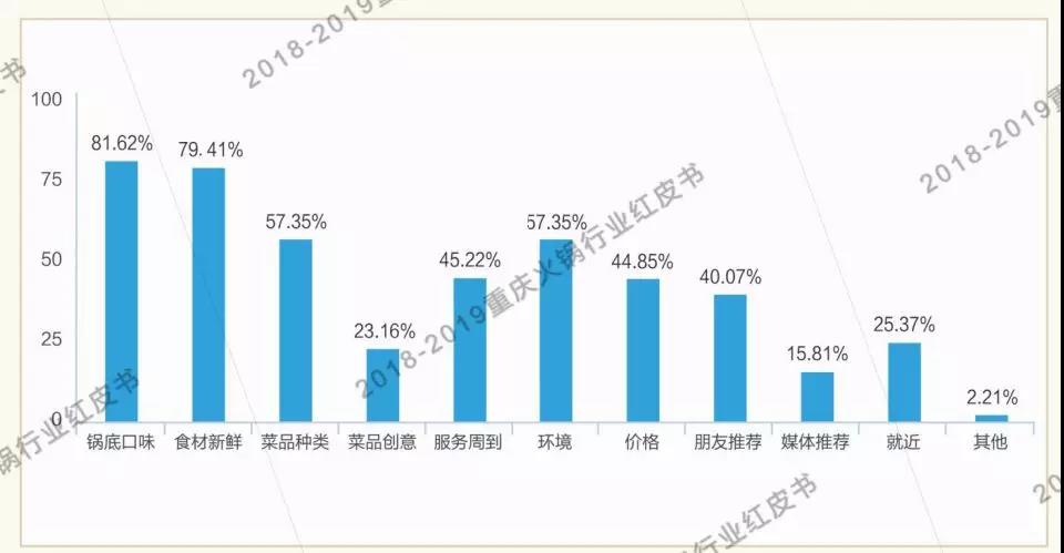 據(jù)調(diào)查,鍋底口味是消費(fèi)者是否復(fù)購的決定性因素,說明味道乃生存之本。對食材新鮮和菜品種類的要求的增加,說明市場消費(fèi)理念也在逐漸轉(zhuǎn)變。